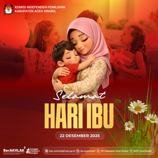 Salam #TemanPemilih, Komisi Independen Pemilihan (KIP) Kabupaten Aceh Singkil mengucapkan Selamat Hari Ibu Tahun 2025, Robbighfirli waliwalidayya warhamhuma kamaa rabbayani saghira. #KIPAcehSingkil #KIPAceh #KIPMelayani #KPUMelayani ....