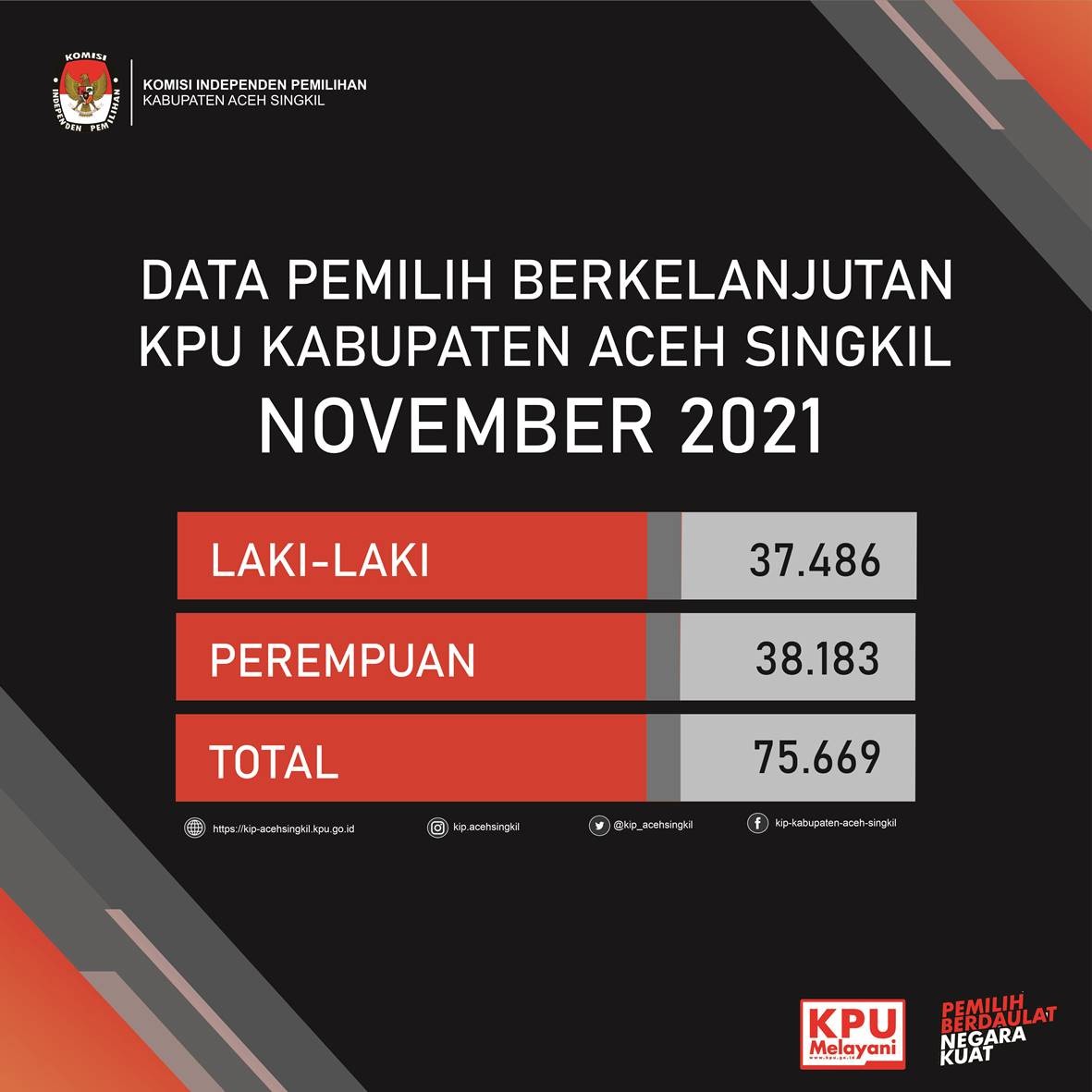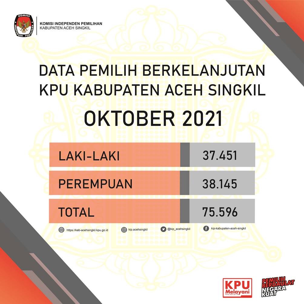 Singkil – Komisi Independen Pemilihan (KIP) Kabupaten Aceh Singkil menggelar Rapat Koordinasi Pemutakhiran Data Pemilih Berkelanjutan (PDPB) di Kabupaten Aceh Singkil Periode September Tahun 2021 (Triwulan III) di Media Center KIP Kabupaten Aceh Singkil Desa Selok Aceh Kecamatan Singkil, Kamis (30/9). Rapat ini dilaksanakan pukul 14.00 s.d.16.00 WIB dan dihadiri seluruh Anggota KIP Kabupaten Aceh Singkil dan tamu undangan dari Bawaslu Kabupaten Aceh Singkil, Polres Aceh Singkil, Kodim 09/10 Aceh Singkil, Dinas Kependudukan dan Pencatatan Sipil (Disdukcapil) Kabupaten Aceh Singkil, Badan Kesatuan Bangsa, Politik, dan Perlindungan Masyarakat (Bakesbangpol dan Linmas) Aceh Singkil, dan Partai Politik se-Aceh Singkil. Dalam rapat ini, KIP Kabupaten Aceh Singkil menetapkan penambahan 57 orang potensi sebagai pemilih baru dan pengurangan 30 orang pemilih Tidak Memenuhi Syarat (TMS). Data ini diperoleh dari hasil koordinasi KIP Kabupaten Aceh Singkil dengan Disdukcapil Kabupaten Aceh Singkil. Dengan demikian, DPB Kabupaten Aceh Singkil Periode Agustus 2021 yang berjumlah 75.526 orang bertambah sebanyak 27 orang. Sehingga DPB Kabupaten Aceh Singkil Periode September 2021 menjadi 75.553 orang. Selengkapnya silakan klik disini. Terkait PDPB Triwulan III Tahun 2021 (Periode Juli s.d. September) di Kabupaten Aceh Singkil, KIP Kabupaten Aceh Singkil mencatat total penambahan 372 potensi pemilih baru dan pengurangan 46 pemilih TMS. Sehingga Pemilih di Kabupaten Aceh Singkil yang berjumlah 75.227 pada Triwulan II bertambah 326 orang menjadi 75.553 orang pada Triwulan III. Selain menyampaikan kepada seluruh pemangku kepentingan, KIP Kabupaten Aceh Singkil juga mengumumkan hasil PDPB Kabupaten Aceh Singkil melalui papan pengumuman, website yang dimiliki KIP Kabupaten Aceh Singkil, dan melalui media elektronik radio. KIP Kabupaten Aceh Singkil juga menerima masukan/tanggapan dari masyarakat tentang perubahan alamat, status pekerjaan, identitas dalam data tersebut, belum terdaftar sebagai pemilih atau telah meninggal dunia. Masukan/tanggapan dari masyarakat dapat dilakukan dengan formulir yang telah disediakan baik langsung datang ke kantor KIP Kabupaten Aceh Singkil atau secara online di link Tanggapan Masyarakat PDPB [kip_aceh_singkil]