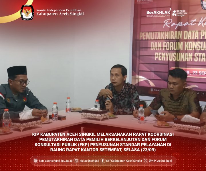 Dalam rapat ini, KIP Kabupaten Aceh Singkil menetapkan penambahan 57 orang potensi sebagai pemilih baru dan pengurangan 14 orang pemilih Tidak Memenuhi Syarat (TMS). Data ini diperoleh dari hasil koordinasi KIP Kabupaten Aceh Singkil dengan Dinas Kependudukan dan Pencatatan Sipil (Disdukcapil) Kabupaten Aceh Singkil.