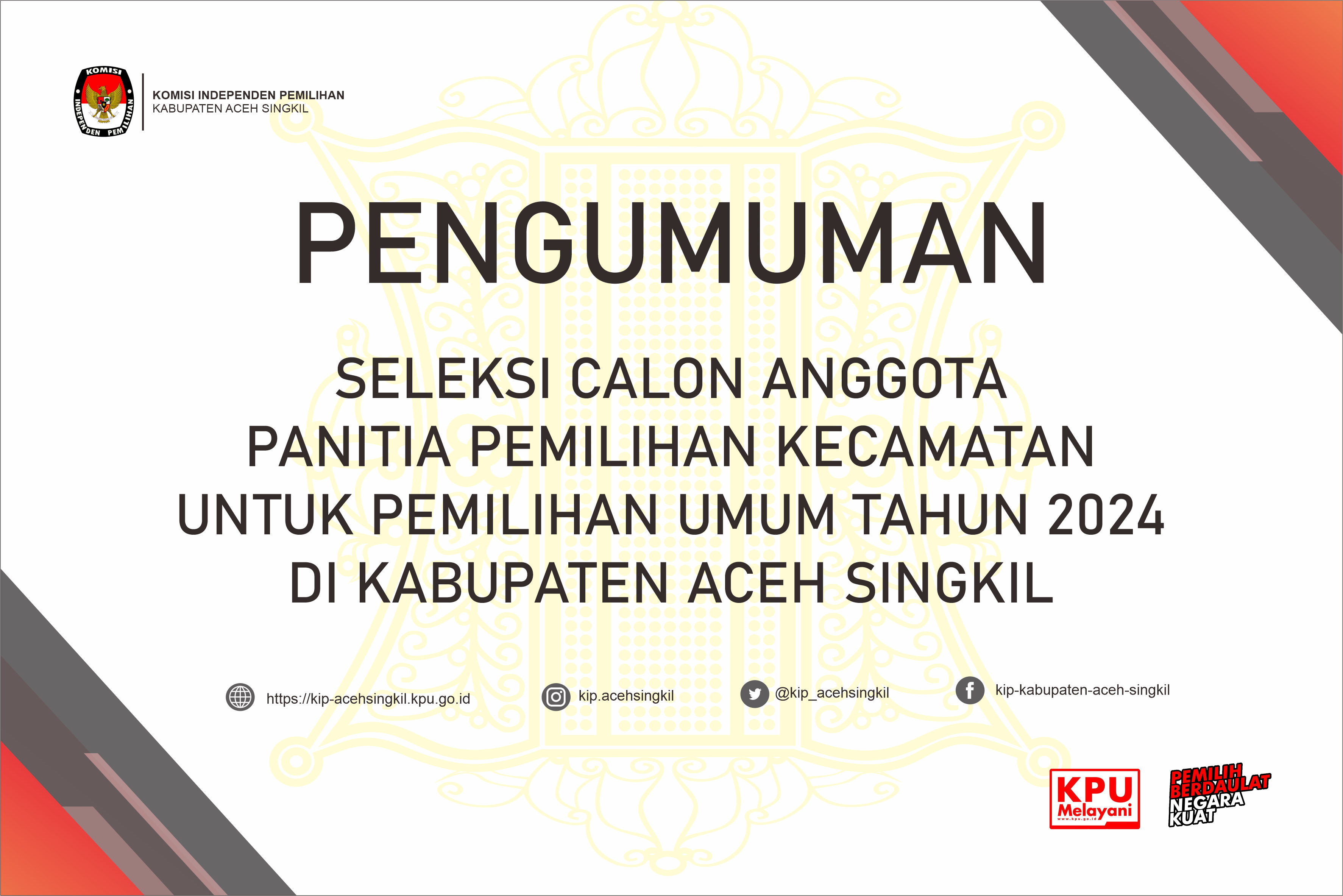 Berikut Pengumuman Hasil Seleksi Tertulis CAT Panitia Pemilihan Kecamatan (PPK) Untuk PEMILU 2024.